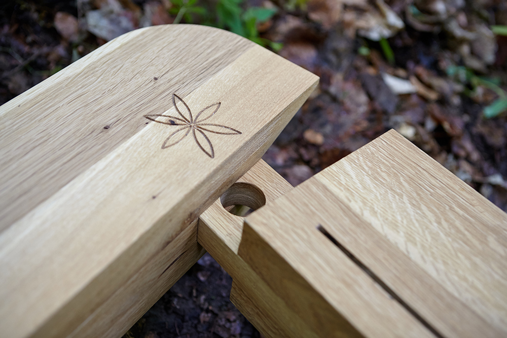 Die Blume des Lebens als Schnitzerei in der Rückenlehne ist ein individuell wählbares Highlight. Sie besteht aus 19 Kreisen und ist ein Symbol für den Zyklus der Schöpfung. Leben und Bewusstsein entspringen in 7 Schritten aus einer Quelle, diese sind identisch mit dem Prozess der Zellteilung aller Lebensformen. Deshalb wird die Blume des Lebens auch gerne als Kunstwerk der Schöpfung Gottes gesehen.